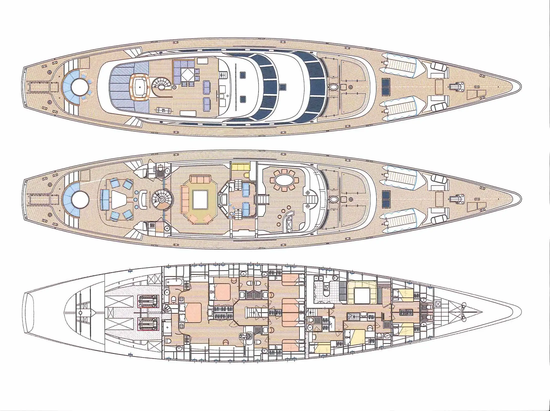 - Exceptional comfort and relaxation due to extended fly bridge, jacuzzi and large sun pads