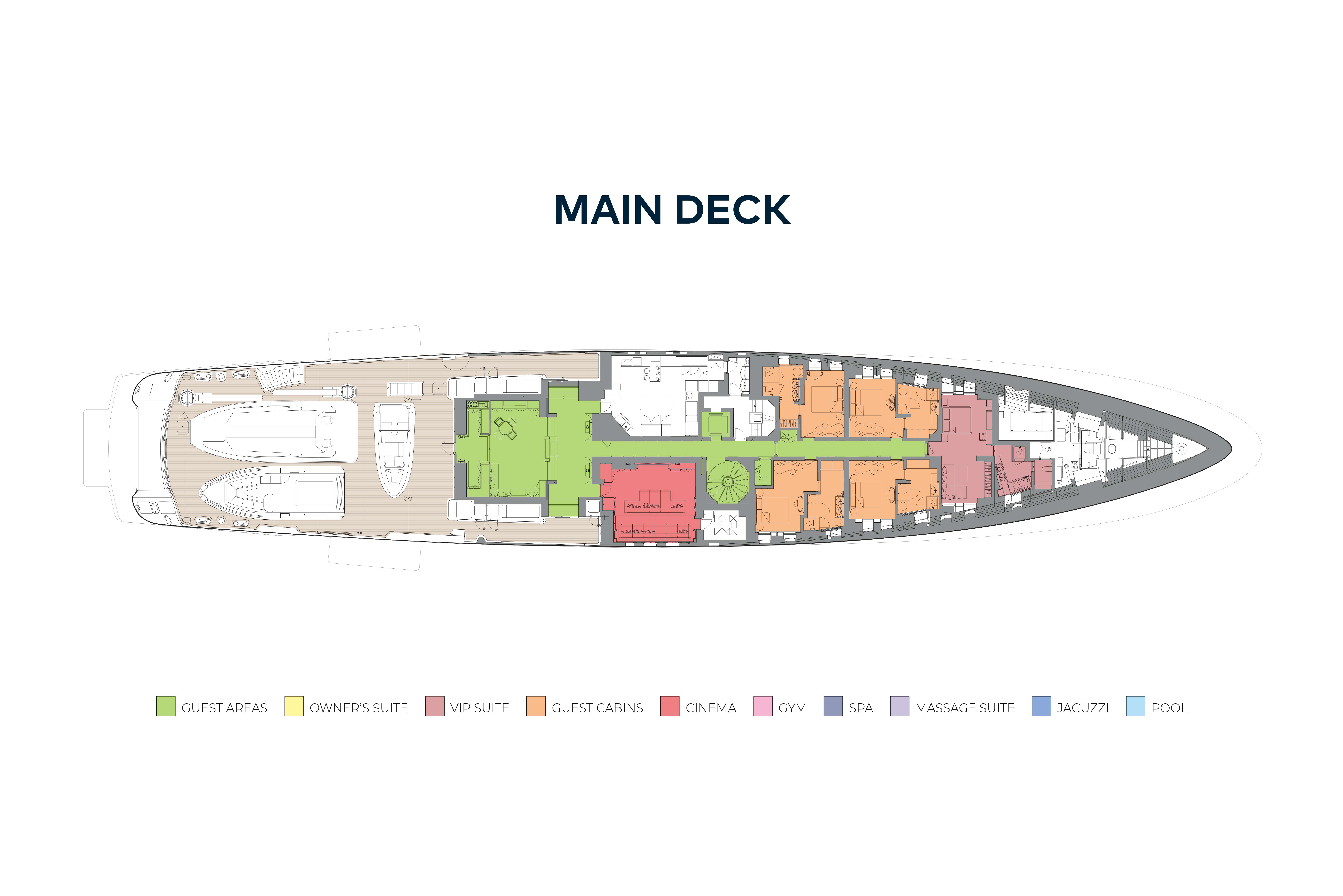 - Impressive tenders and watertoys capacity with dedicated enclosed storage