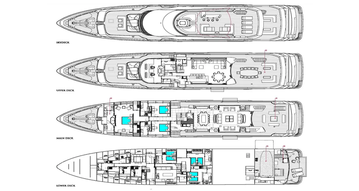 - Zero speed stabilisers to reduce any rolling motion while at anchor
