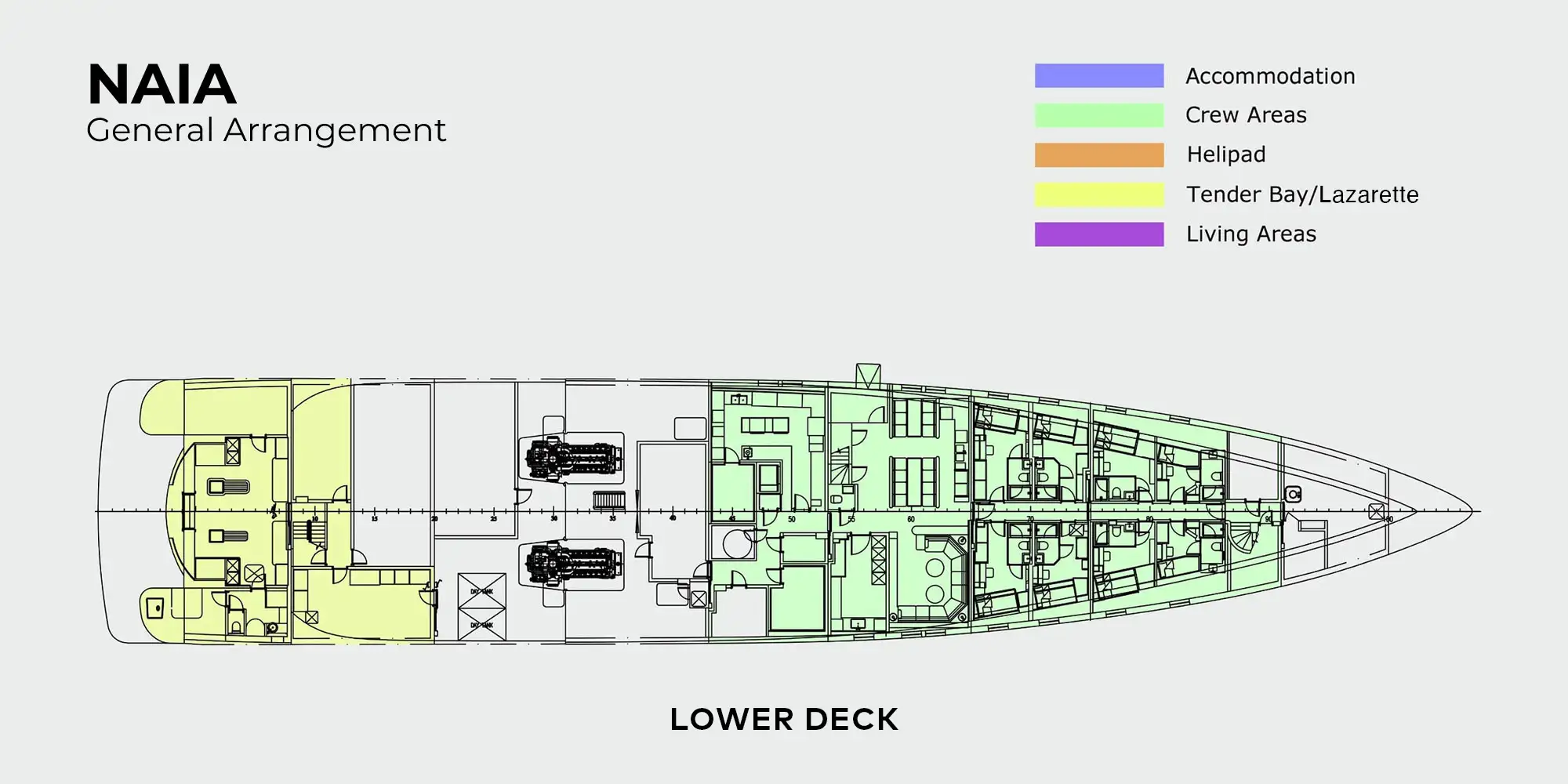 With her first class crew, comfortable accommodation and varied range of amenities over four guest decks, NAIA promises her guests an extraordinary charter that will surpass your expectations.