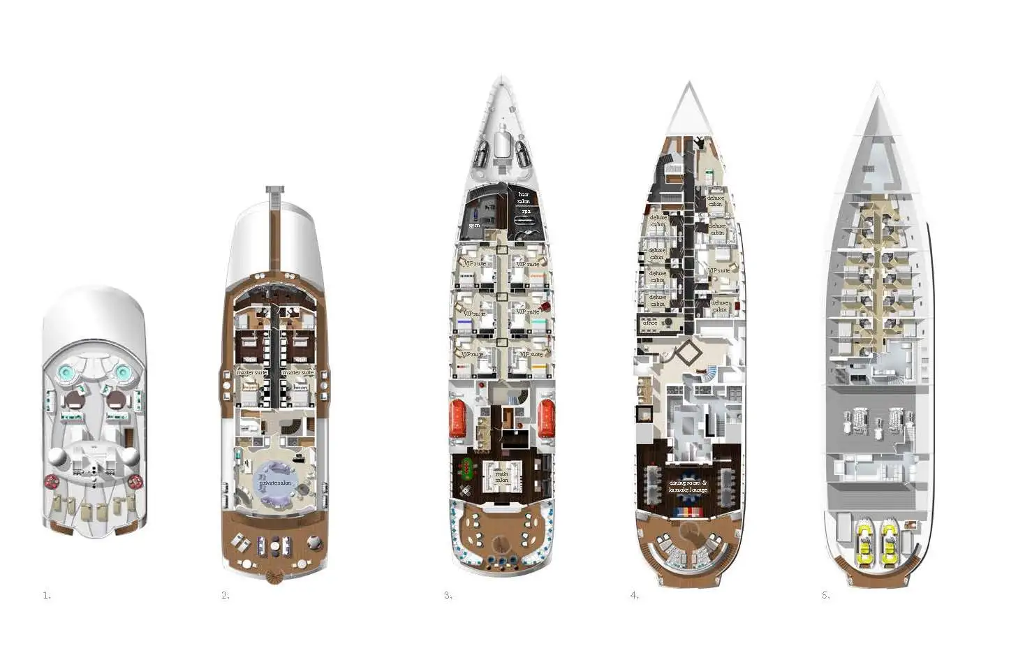 With a distinctive style that transports you to a vibrant, modern beach house, SALUZI invites up to 32 guests to recharge and revitalise across her five decks, with unusual features including a spa, salon, karaoke bar and open air cinema.
