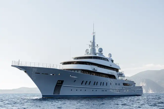 Comprehensive wellness facilities include a lower deck gym with sea terrace and a beach club spa with beauty salon, massage, sauna, hammam and a large swimming pool. The yacht's crew includes a spa therapist and a fitness instructor too, to ensure guests are properly pampered and thoroughly worked out.