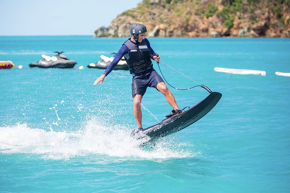 I have three favourite activities - surfing, wind surfing and diving, but not all islands have surf, so we use our electric Jetsurf, and I am looking forward to getting out the new wing kite when there is some wind.