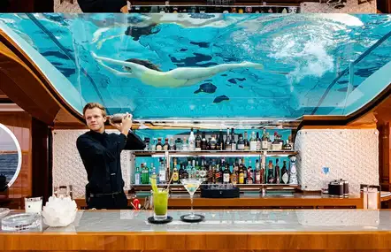 'When it comes to features, no other yacht comes close, it's difficult to know where to start. Relaxation is one of her strongest suits,' explains Caroline. 'She has the best beach club I've ever seen, it's absolutely her signature feature. It's like having your own Club 55 - I found myself subconsciously wondering where the sand was! It's a huge space, open on three sides with the swim platform aft and folding sea terraces either side, and there's a dazzling bar dappled with natural light from the glass bottomed pool above. It's mesmerising. There's a sun deck jacuzzi too, built in blue carbon fibre, and sun lounging on every deck, but this beach club is somewhere you never want to leave.