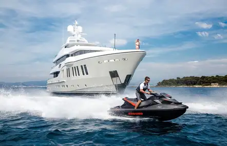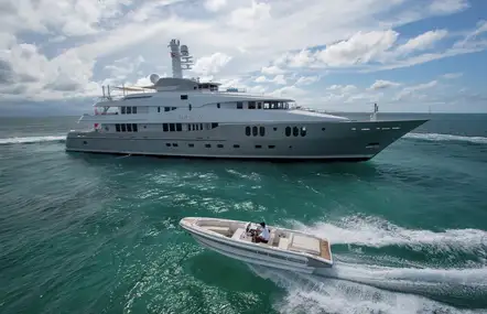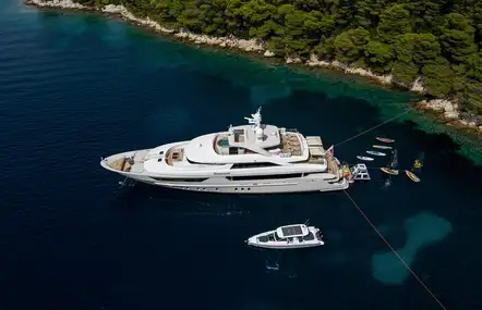 With two full-beam principle cabins, an elevator to all decks, hair salon and high-spec chase boat, this yacht lives up to everyone's charter expectations
