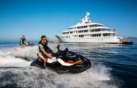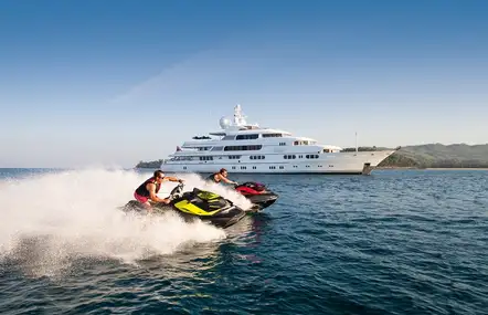 This yacht is all about family fun. There is a great selection of watertoys, and a huge sun deck with a 10-person jacuzzi to hang out together