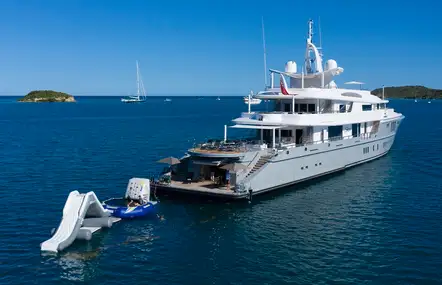 This yacht looks after everyone - step-free access to living spaces, inflatable water park, plus cabins for staff... It all adds up to peace of mind