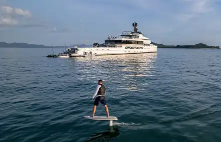 A high-tech yacht that loves to entertain you, offers everything from a 3m outdoor cinema screen to a Phantom 3 drone