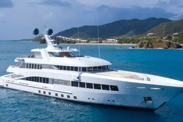 She accommodates 10 guests in five cabins, including a full-beam master suite, two sizable VIP suites, one king-sized double cabin and a twin cabin. Powered by twin 1,520hp MTU diesel engines, she has a maximum speed of 15 knots and cruises at 12 knots. Her range at cruising speed is an impressive 5,300nm.