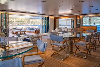 'She also has not one but two incredibly talented head chefs. I was so impressed with their variety of cuisines - they cover every base - and the dining spaces are exceptional. There is dining inside and out on the upper deck in a wonderful decked lounge area overlooking the helipad.