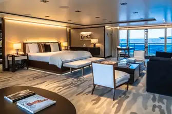 'There's also a lower deck VIP suite with its own sitting room that can be converted into a second double. There are several cabins that can be made available for staff, which families may need. With an elevator to all decks, she welcomes every generation of the family too.'