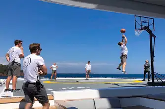'If you prefer your exercise to be competitive, the helipad works brilliantly as a games deck for all sorts of ball sports. Of course it's first and foremost a helipad and there is a helicopter available too for an additional cost, which really expands your range to explore the attractions ashore. Below the helipad is a clever hangar so that huge deck space is always ready for sports, gym equipment or yoga.