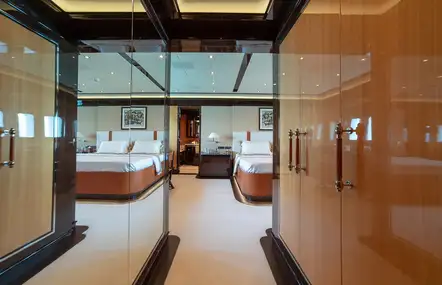 Owner’s suite with two oversized single beds that when converted create one hug king-sized double