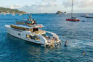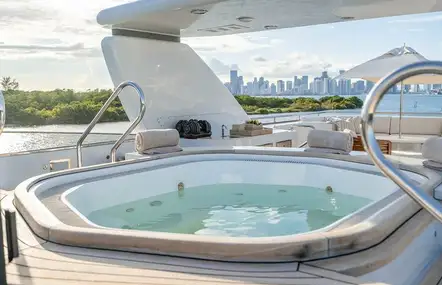 Exceptional comfort and relaxation due to extended flybridge, jacuzzi and large sunpads