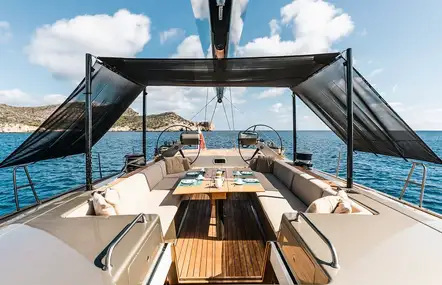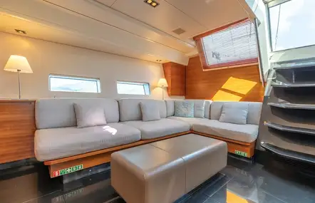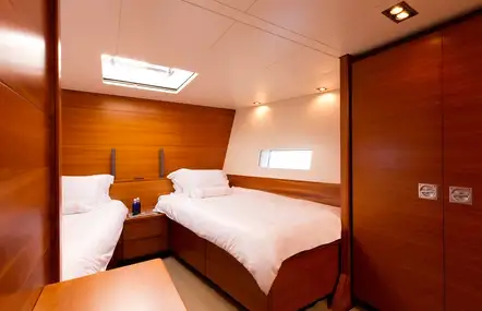 Designed by German Frers the master of combining sparkling performance with sleek looks and fine comfort, with the yard’s in-house team responsible for her clean and contemporary interiors. The family-friendly guest cockpit leads to the lower deck accommodation that can accommodate eight guests in three cabins and a forward owner’s suite.