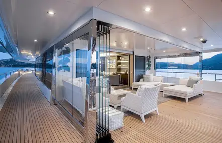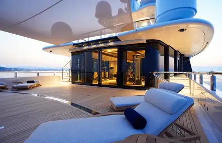 Prolific charter yacht TITANIA boasts a spectacular beach club at sea level and two master cabins for the ultimate shared luxury yacht charter.