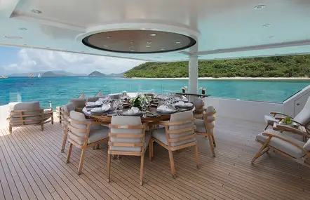 Lounge, dining, wet bar, BBQ, touch and go helipad aft