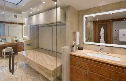 Onyx therapeutic Vichy shower, skylight in foredeck jacuzzi