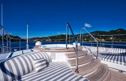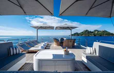 BELLA II is RINA and MCA compliant, presenting her new owner with the option of private and commercial operation. She has a range of family friendly features including two jacuzzis, sun deck gym, open air dining options, skylights for natural light, a media lounge and full beam owner's and VIP suites.