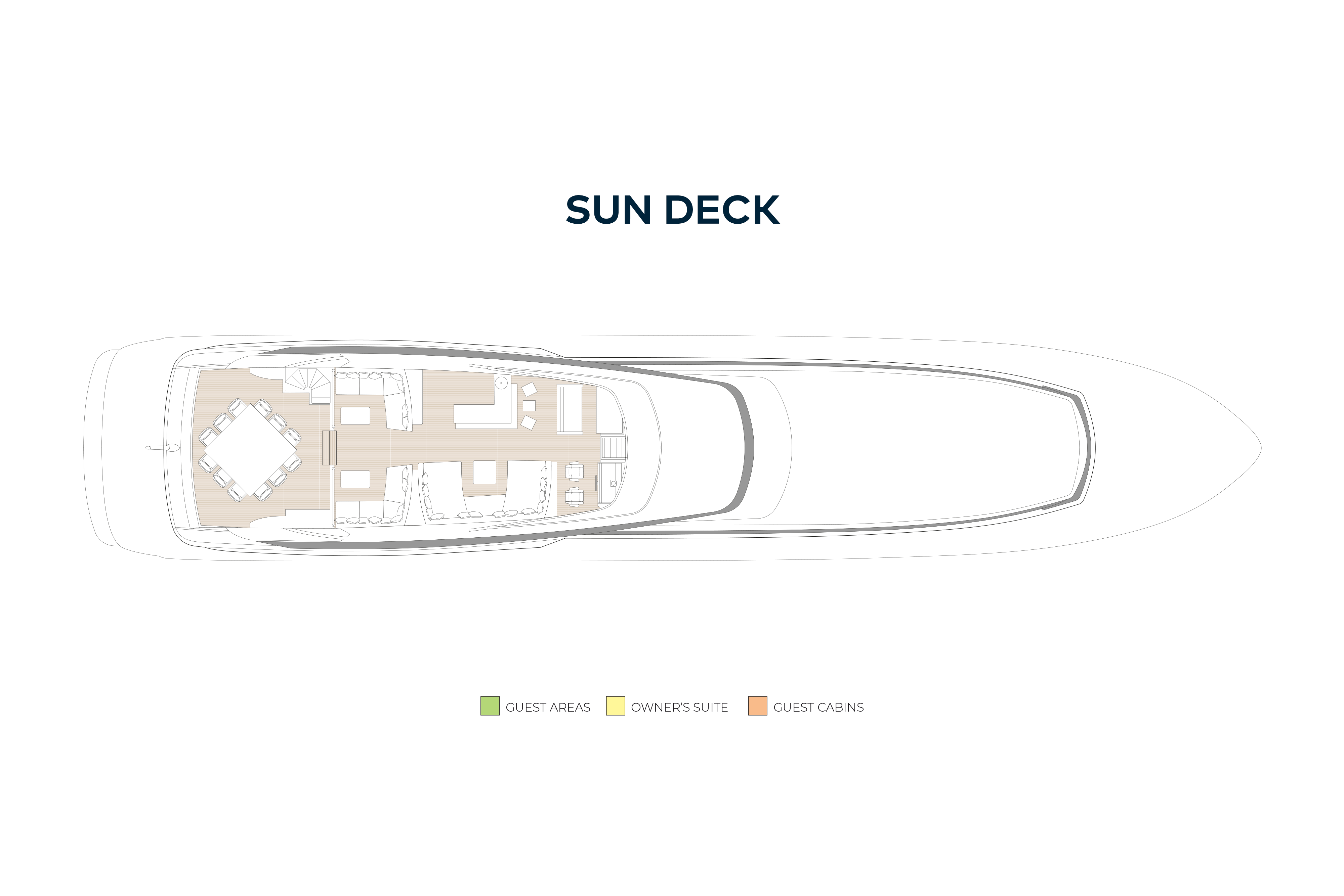 Externally, she has teak decks throughout, and astern is a full-width, teak-laid swim platform which comes into its own at anchor. In her transom you will also find her tender garage and hydraulic lift for her two tenders: Ribline 4.8m (15.7ft) petrol jet tender and 2.2m (7.2ft) rescue tender with 9.9hp outboard.