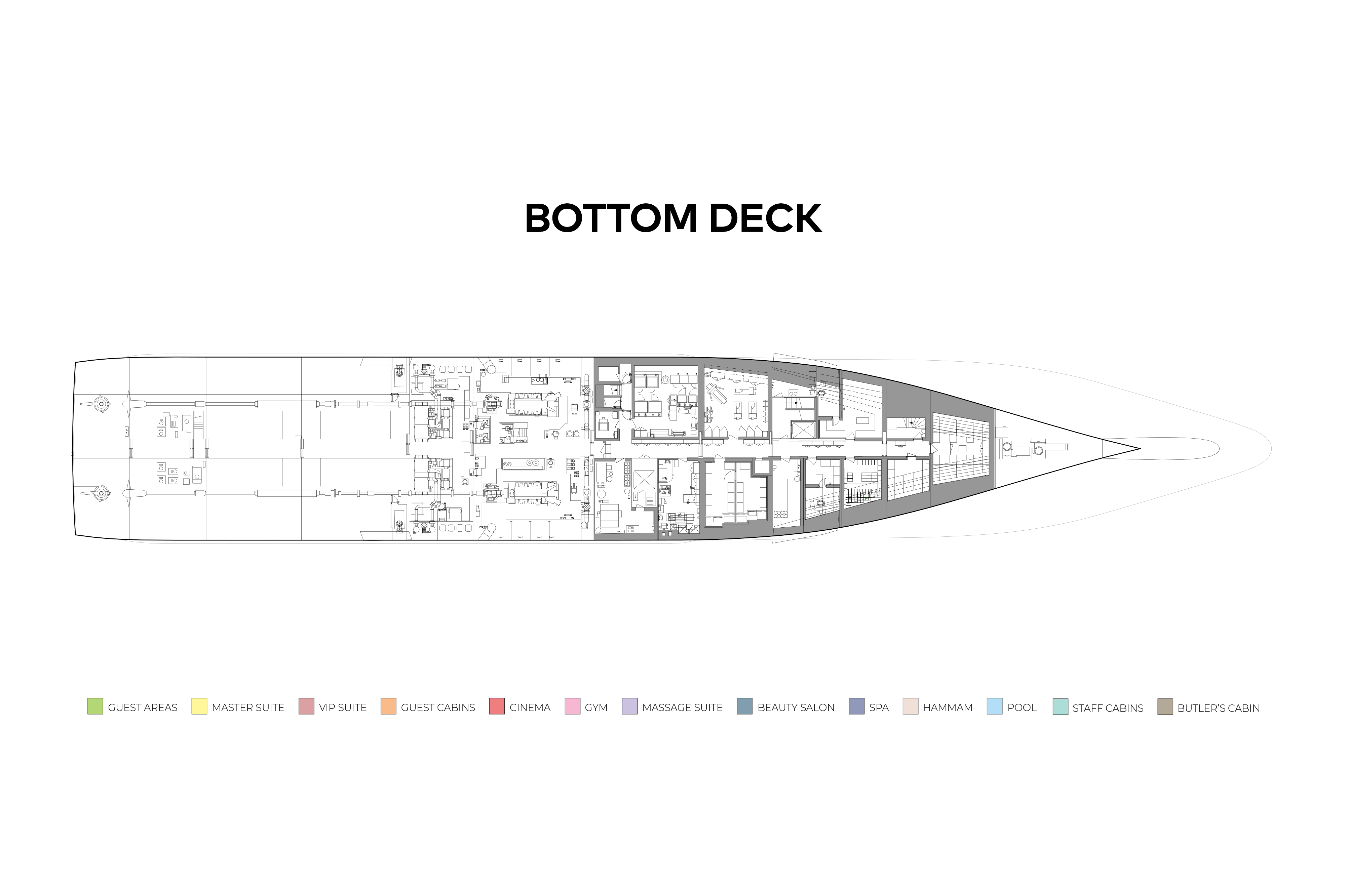 - Flexible accommodation for 24 guests, 10 staff and 46 crew members