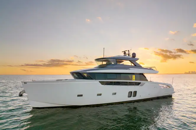 - Vast flybridge with a full wet bar, al fresco dining, sun lounging and a retractable sun roof