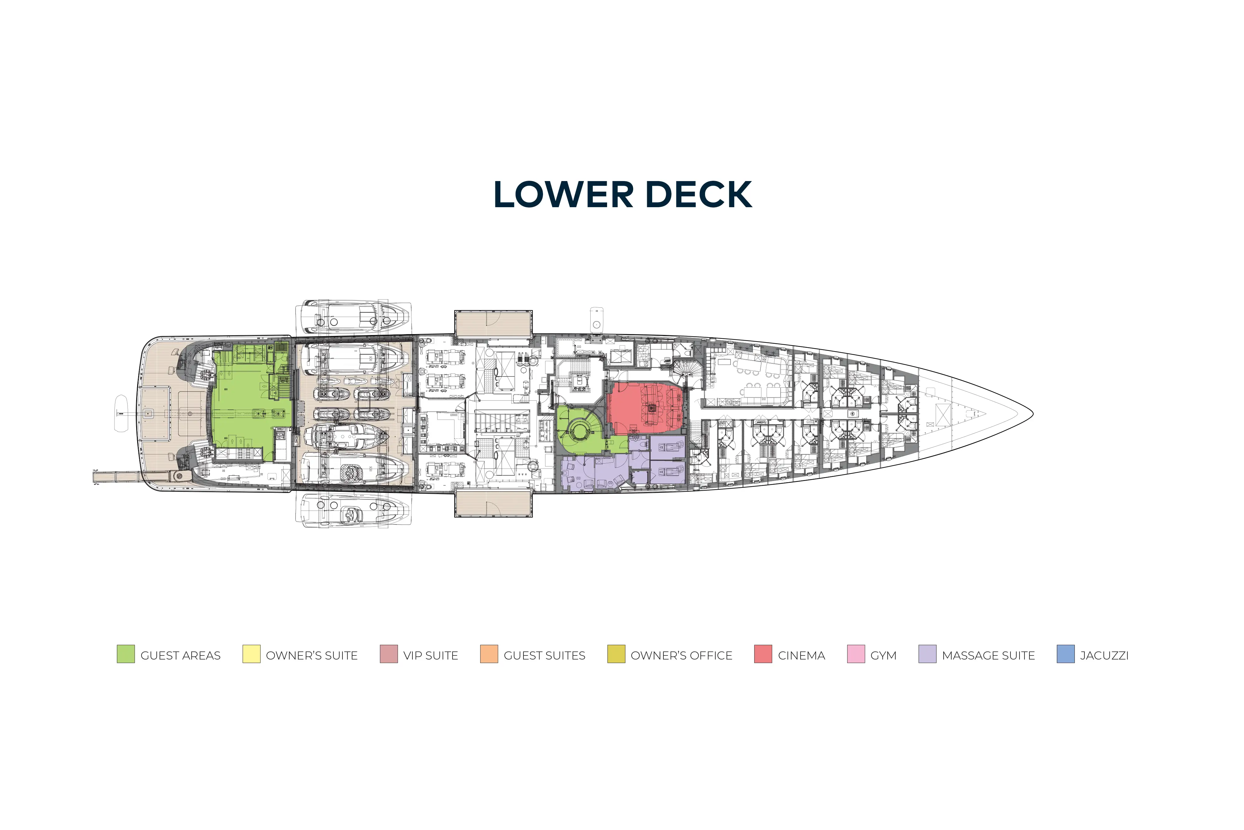 - An elevator serving all decks, from the lower deck to the bridge deck