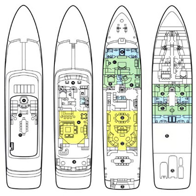 CYAN is a sophisticated offering with a streamlined exterior featuring fine entertainment and a chic interior. Her elegant profile with a dark hull along with ample deck areas are ideal for lounging and entertaining. The latter is her forte. A three-metre outdoor cinema screen comes complete with a movie library of over 1,500 films to choose from. For the more active guests, her extensive toy chest offers waverunners, wake boards, inflatables and more. State-of-the-art technology features throughout including Apple TV, while your own entertainment can be made playing the baby grand piano.
