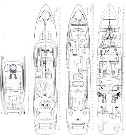 Her master cabin is full-beam on the main deck forward with en suite his and her bathrooms, walk-through wardrobe, sofa and private study. The remaining four guest cabins are located on lower deck. The two full beam double cabins both offer sofa area, vanity facilities and en suite bathrooms with baths. The two twin cabins offer en suite shower rooms and wardrobes.