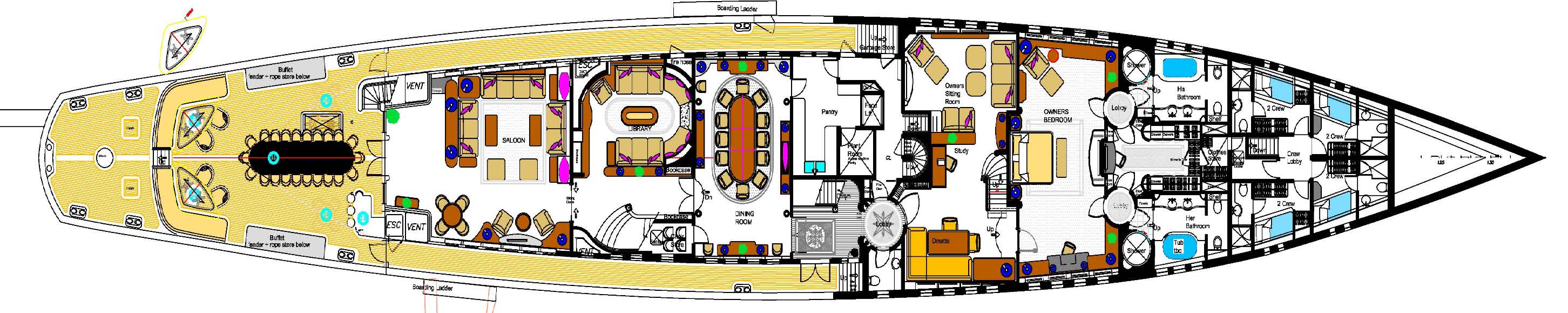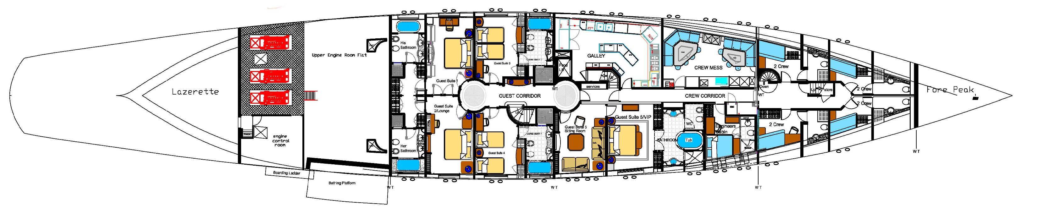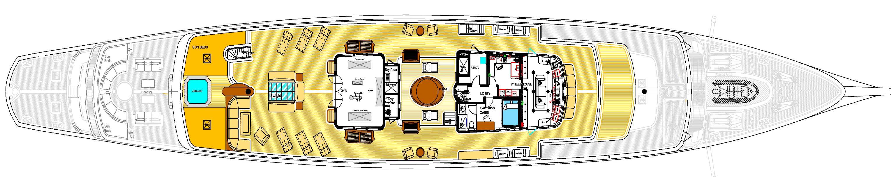 - 5.7m resistance pool on the foredeck and large jacuzzi on the sun deck