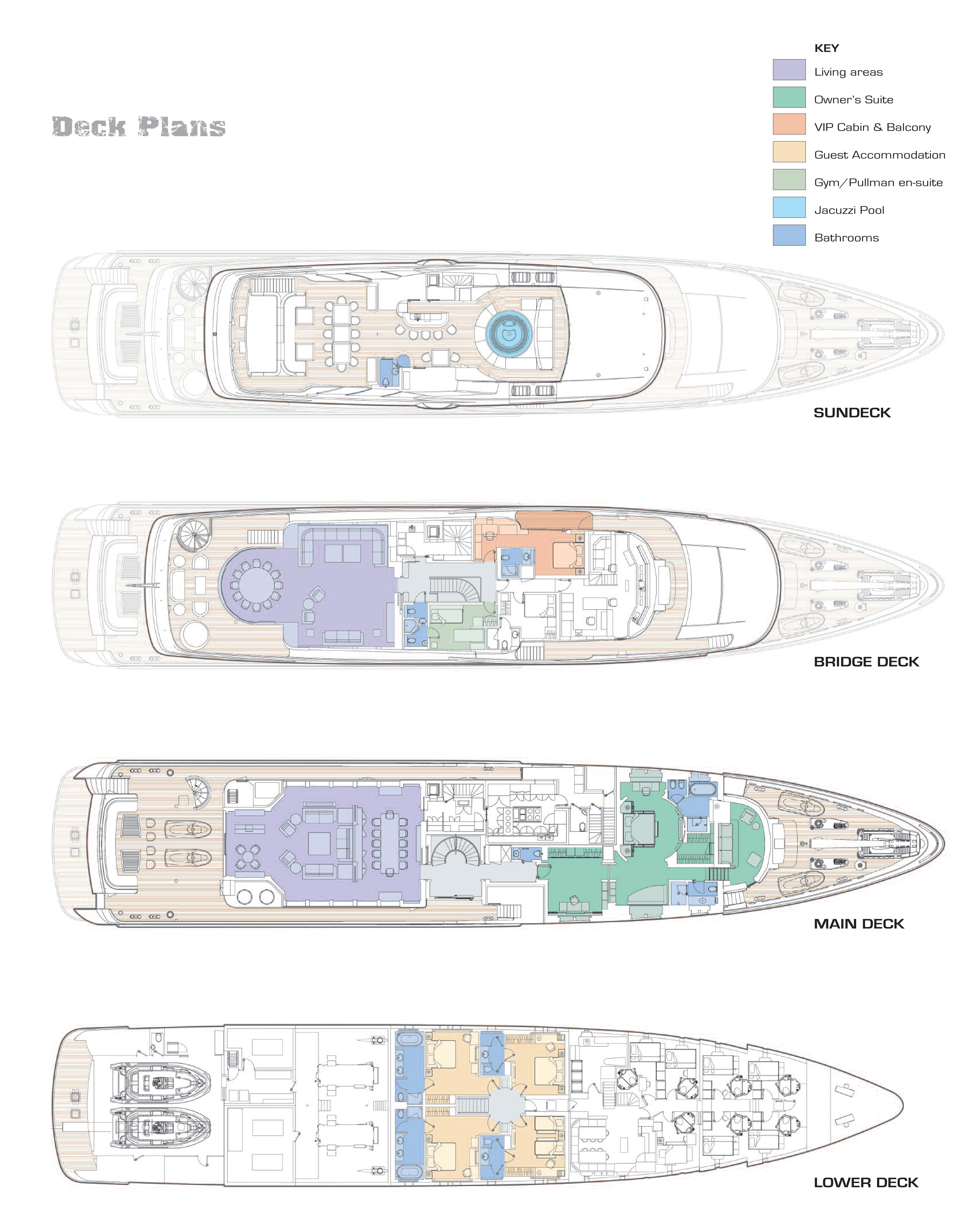 - Master cabin with panoramic observation lounge and direct access to foredeck