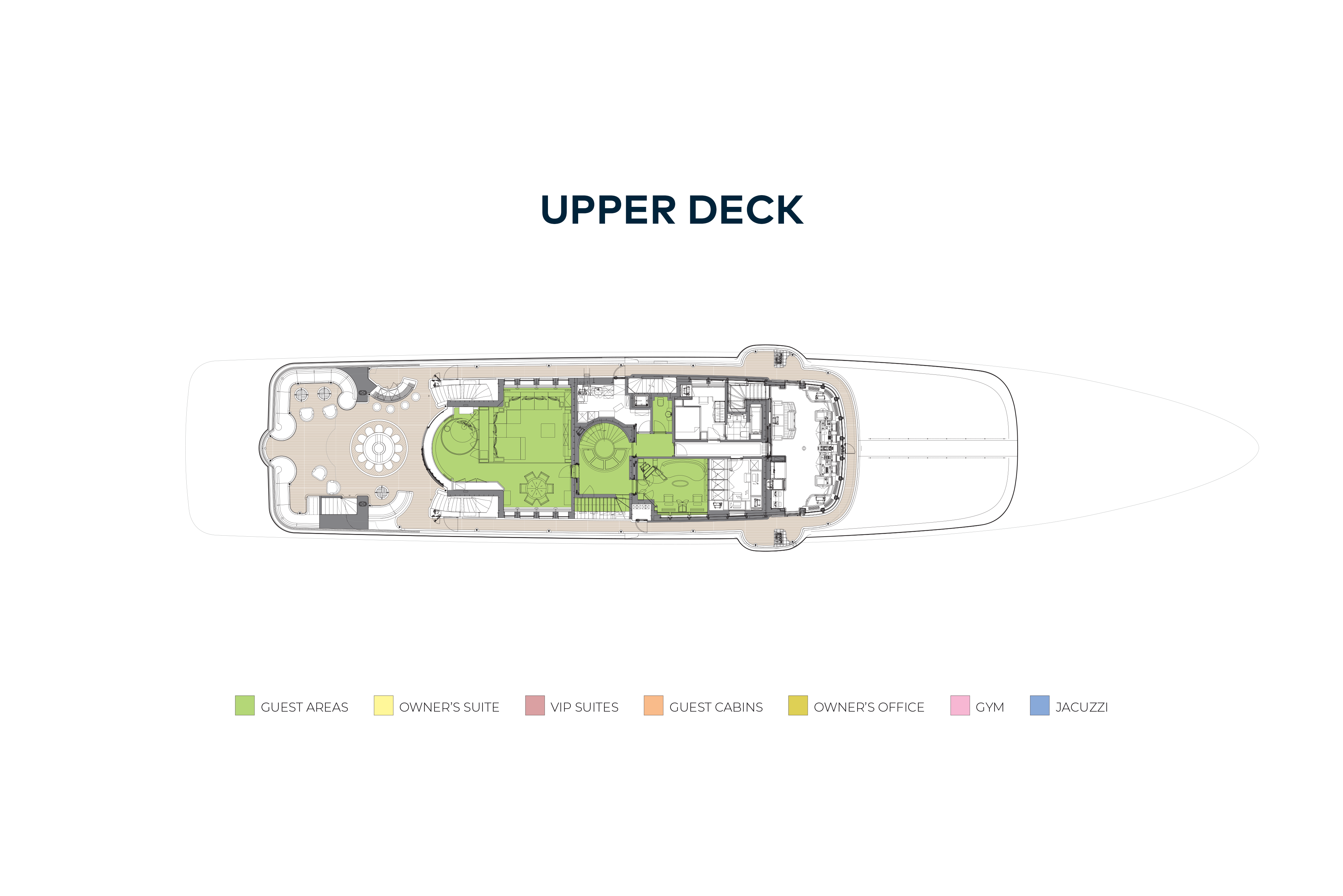 - Oversized glass fronted jacuzzi on the sun deck