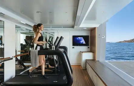 Tapis de course sur le pont, installations ultramodernes avec climatisation et divertissement, le sport à bord est toujours agréable. Il est même possible d’avoir un équipage avec un coach sportif.