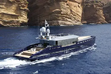 Twin 1,800hp Caterpillar engines are complemented by a 5,100hp gas turbine, for when speed is of the essence, and can propel her to a top speed of 30kn. For longer passages, cruising at 12kn will allow for a range of 1,000nm. Zero speed stabilisers ensure comfort at anchor.