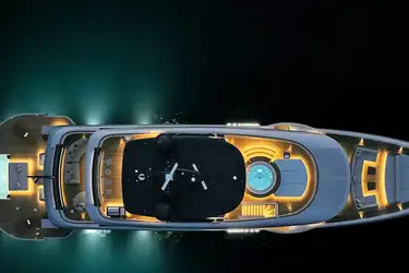 The beach terrace is unique, I can’t think of another yacht with an entirely open beach terrace area wider than the yacht. When you open the fold-out sides it’s more than 11m wide, which is something you might expect to see on a 60m yacht. Benetti has never done anything like this before. The infinity pool is also a very special feature too and the expansive windows really let the outside in, making a great connection with the ocean.