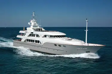 Accommodation for 12 guests is in a full beam main deck owner's suite with private study and his and hers bathroom. On the lower deck are three double cabins and two twin cabins, one of which is convertible and the other has an additional berth. She also accommodates up to 11 crew.
