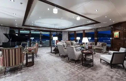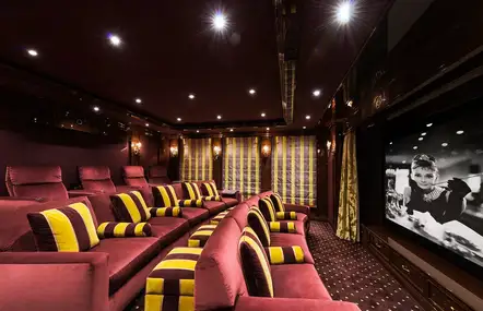 Her interior comes from the design house Johnson Wen/Mulder & Associates. You can see their signature touch in finishes such as the Lalique bar and the cinema with raised stadium seating.