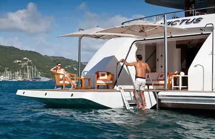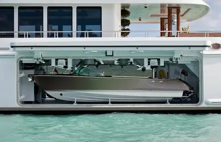 ‘When it comes to watersports, INVICTUS is no slouch. Her tender garage houses a tender, jetskis, SeaBobs and there's plenty of space for all the other tricks and toys you might want. There’s a beach club seating area and dayhead, plus a huge, extending swim platform where guests can enjoy all the watertoys.’