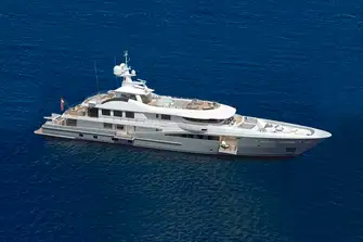 PAPA is a 671GT yacht with a steel hull and aluminium superstructure built to Lloyd’s classification and commercial compliance (she is a crowd-pleasing Burgess charter yacht). A huge split-level sun deck has a fully equipped bar, open-air dining, Teppanyaki grill and a flip-down TV beneath the hardtop and a large, versatile space aft. Forward is a raised jacuzzi for eight guests, sunpads and more sun lounging space that doubles as a touch-and-go helipad. The upper deck aft is another large entertainment space with open-air dining and buffet bar beneath the overhang and a sun lounge aft. She has a transatlantic range of 4,500nm with fin stabilisers keeping the passage comfortable.
