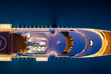 Technologically she is a breakthrough yacht with low noise, low vibration diesel electric Azipod propulsion and an 8,000nm range, clever power management and heat recovery systems, and the largest hybrid battery drive ever seen on a yacht, which means she can operate silently overnight at anchor. It's absolute state of the art tech, completely groundbreaking.