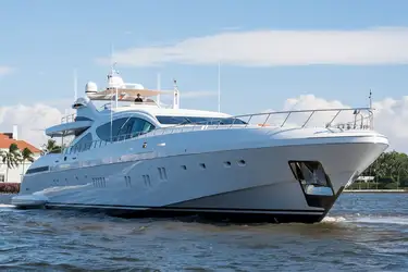 MISS MONEYPENNY V, hull No.7 of the iconic Mangusta 165 series, was built in Italy by Overmarine to designs by Stefano Righini and delivered in 2012. This sleek, powerful yacht blends comfort and performance in equal measure to create a genuinely exhilarating experience.