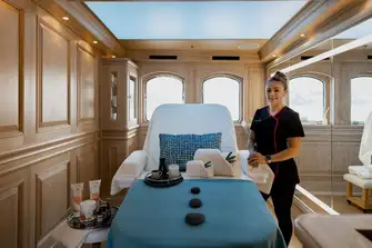 Another new feature is the beauty salon on the upper deck, complete with a professional Nilo chair, which not only enables manicures, pedicures and hair treatments, but also converts into a massage table. After your treatment by the crew's very own beautician and masseuse you can freshen up in the en suite bathroom and shower and emerge energised and ready to take on the world. She also has a second massage room if you need a change of scene.