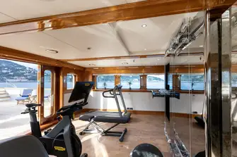90.1m (295.6ft) NERO, the queen of any anchorage anywhere in the world, has an all-new state-of-the-art gym on the sun deck. It's packed with top-of-the-range Technogym kit including a Kinesis, treadmill, cross trainer and a cardio bike. Guests will also find loose weights and everything needed for yoga and pilates including a qualified physical trainer as part of the crew.