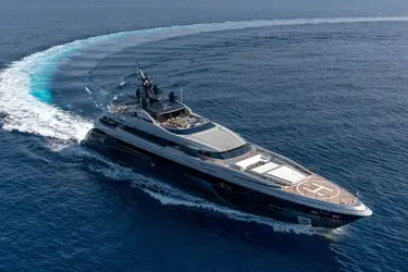 There is open-air dining on the upper deck aft with plenty of room for relaxing and socialising, and a touch-and-go helipad on the foredeck that doubles as a huge sun lounge. She also has the all-important sea-level beach club with lounge and entertainment systems on the lower deck aft.