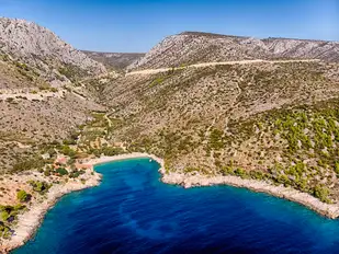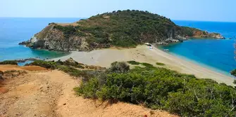Greece has quite literally been carved by the seas and nowhere is this more obvious than the three-pronged peninsula of Halkidiki in the north. The middle 'prong' of Sithonia offers several secluded spots, one of which is Lemos. Located right at the bottom of the peninsula, the tiny isthmus comprises soft sand beaches on both sides of a spit. While it may not be entirely secret, it can only be reached by a dirt track that passes several other remote beaches on the way, so visitors on foot rarely make it this far. The best way to reach it is by boat, dropping anchor and taking the tender ashore.