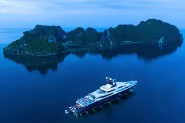 The 91.5m (300.2ft) yacht TRANQUILITY was delivered in 2014 by the renowned Dutch shipyard Oceanco with exterior design by the shipyard in collaboration with Winch Design and Asian influenced interiors exclusively by Winch Design. Ice classed for high latitude exploration and built to the Passenger Yacht Code (PYC), she can accommodate 18-22 guests in 9-10 suites across bridge, upper and main decks. Her 2,998GT gives her an exceptional volume too.