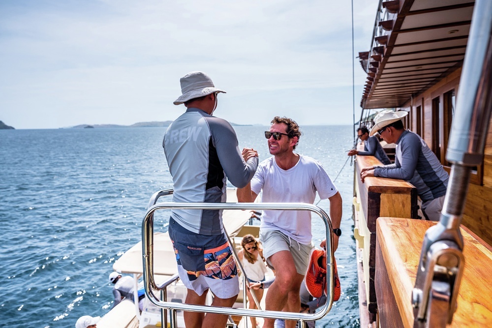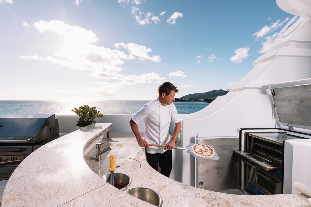 After breakfast, it’s time to dive into the day – literally. With every watertoy you can imagine at the ready, the ocean becomes one big playground. Little ones can snorkel near the reef, while older kids test out the SeaBobs, waterskis or go head-to-head on inflatable obstacle courses. There’s space for quiet wonder too – drifting over coral gardens, feeding stingrays in the shallows, or spotting dolphins surfing the yacht’s wake.